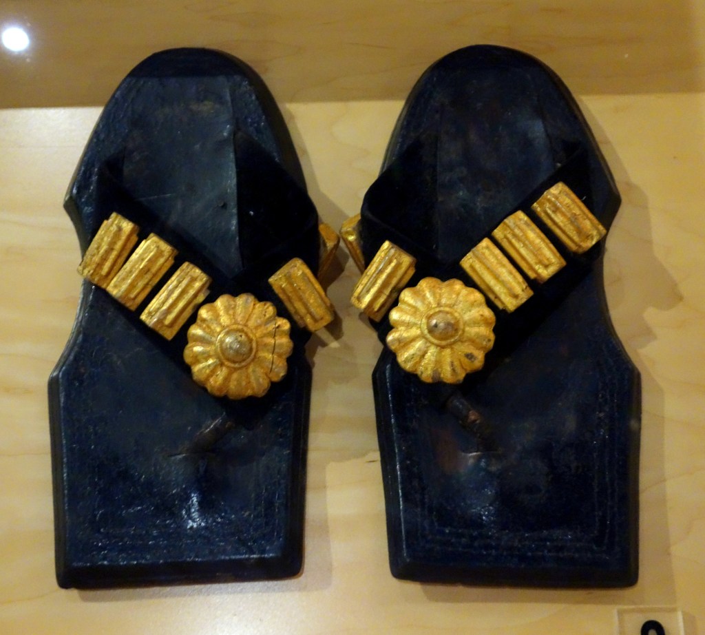 Early Egyptians have been known to wear sandals made from leather or straw, often worn by the elite when venturing outdoors. These status symbol were seldom worn indoor. When King Tut’s tomb was opened, Howard Carter discovered 93 fragments of footwear which included flip-flops that were extravagantly adorned. Interestingly, archaeologists have discovered that Ancient Egyptians made shoes for the right and left foot; unlike earlier European shoes.