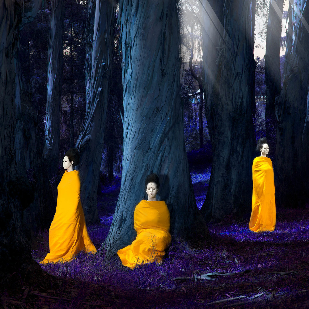 “Pulled between the past, the present and the future, we wrap ourselves with forgotten heritage and dream of looking towards the future, but we are stuck looking into the past. For eternity we are toiling with rituals and ceremony, yet our past deeds are marked by unhealing wounds, the blood of false victory stitched by the threads of nostalgia. A story we each carry, of loss, of oppressors, of victims, of disconnection, of belonging, of longing to see paradise in the dark abyss of eternity.”
