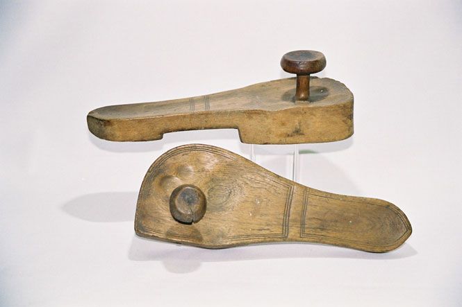 The carving skills of The Luba of Zaire spread into footwear with the wooden toe-knob sandals. With their culture centre in the lineage of the kings, the shoes were made for status or ceremony. Most of the shoes that have been discovered carry evident wear which is evidence of the Luba’s tradition of handing down royal footwear across generations.
