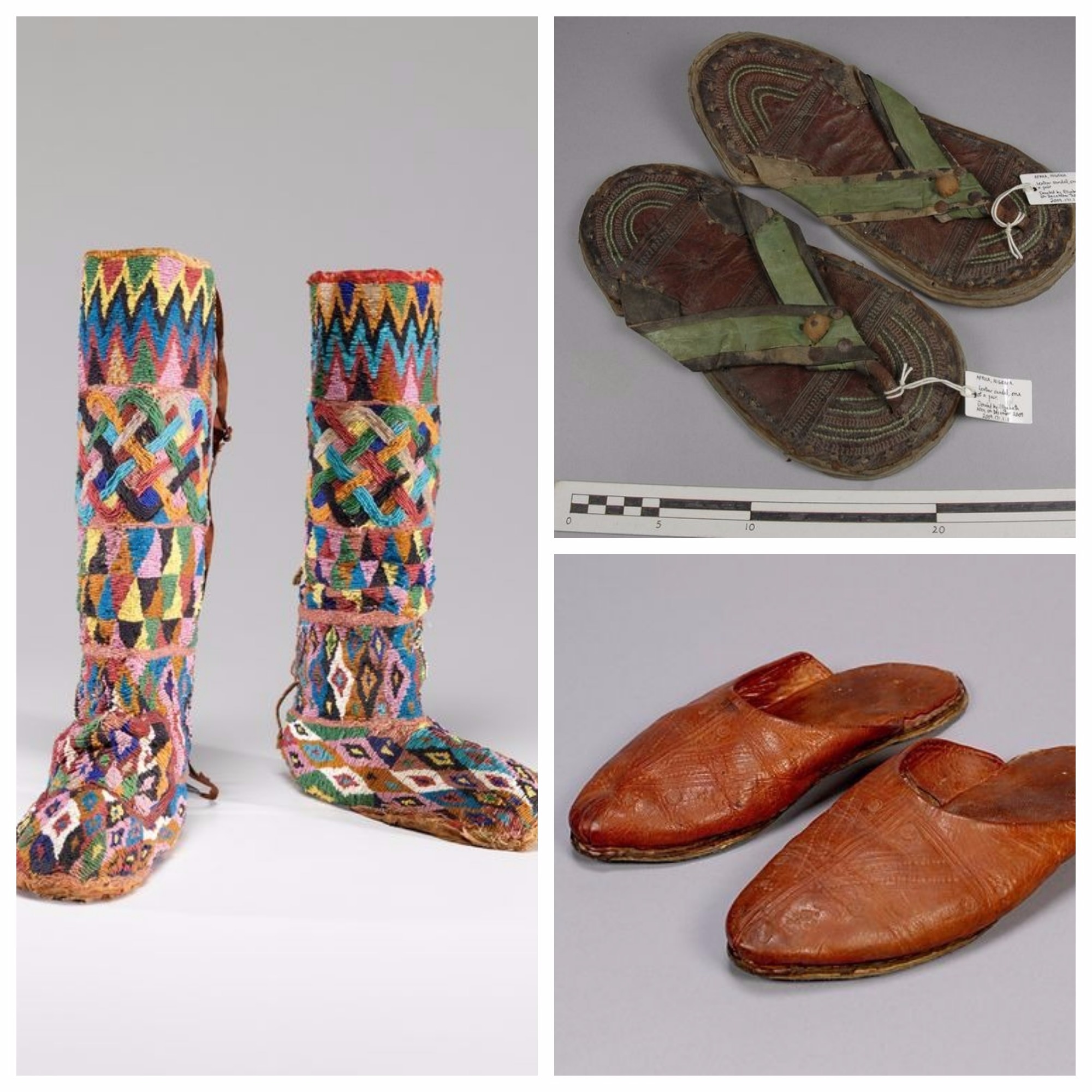 Finding a timeline or archaeological evidence of footwear or shoes prior to external influence is difficult to say the least. What most online articles agree on is that shoes were considered a status symbol in Africa. They were often reserved for ceremonial functions and for royalty. Traditional materials to make shoes, as discerned by anthropologists, were rawhide, leather and metal; to mention a few. There are blog posts, such as ‘Europeans did NOT bring shoes to Africa’, that argue that shoes had been on the continent prior to European influence. However, due to hot climate or the cost of shoes, many preferred to go barefoot. With that debate in mind, we’ll look at some of the footwear findings from the continent: