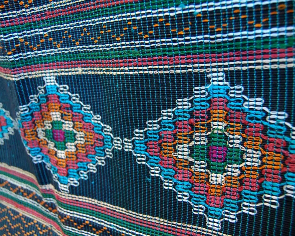 The end result is a continuous wrap that is worn as a single panel. This is a unique feature in the woven fabrics as most end products are two panels joined together. They can be single or double faced, with the latter presenting motifs on both sides.